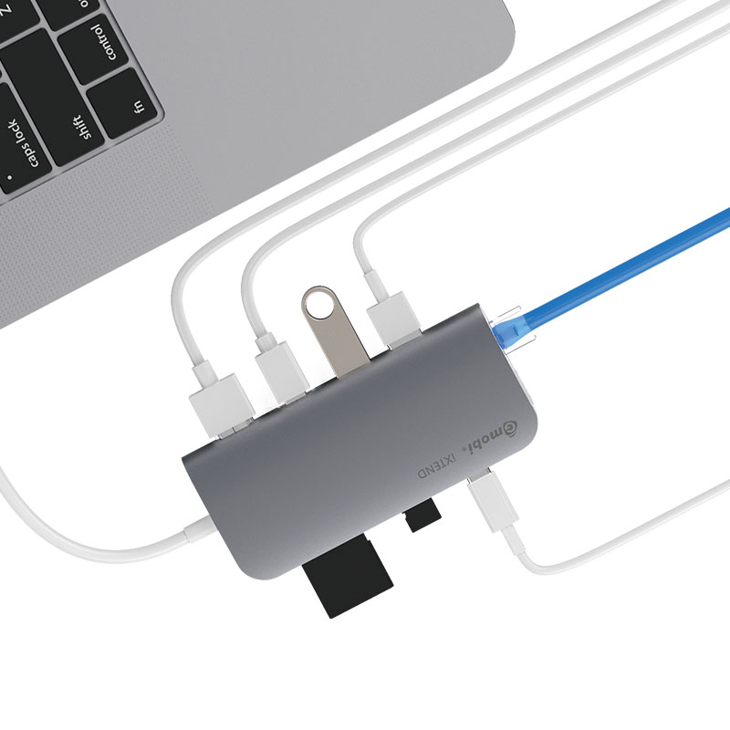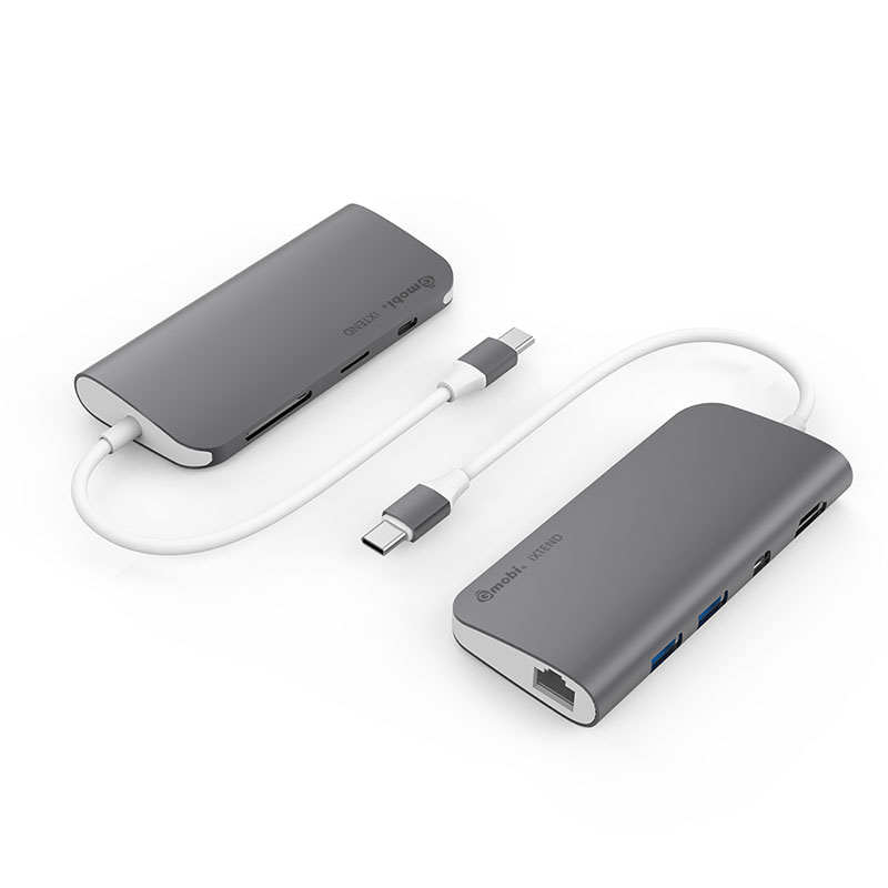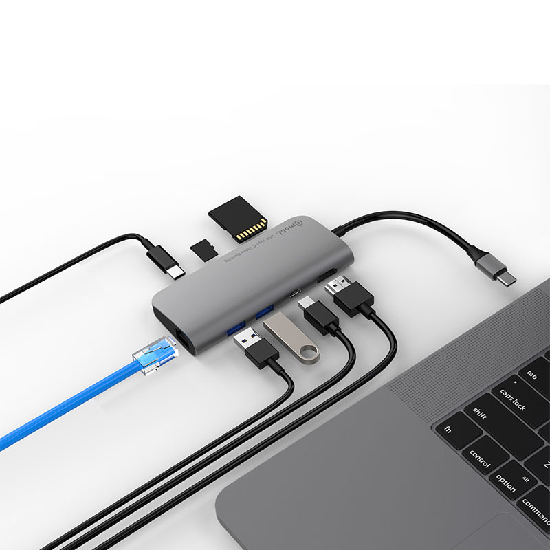 This 8 in 1 HDMI & mini DP multi-port USB-C adapter GN31C is a multi-port Type-C adapter compatible for Macbook & Chromebook and other USB-C enabled devices, it has 3 USB3.0 extension ports, 1 standard SD, 1 micro SD, 1 HDMI, 1 Mini DP, 1 Type-C female connector for USB PD charging and 1 Gigalan Ethernet.