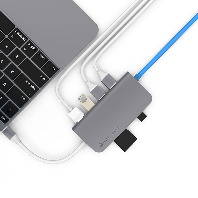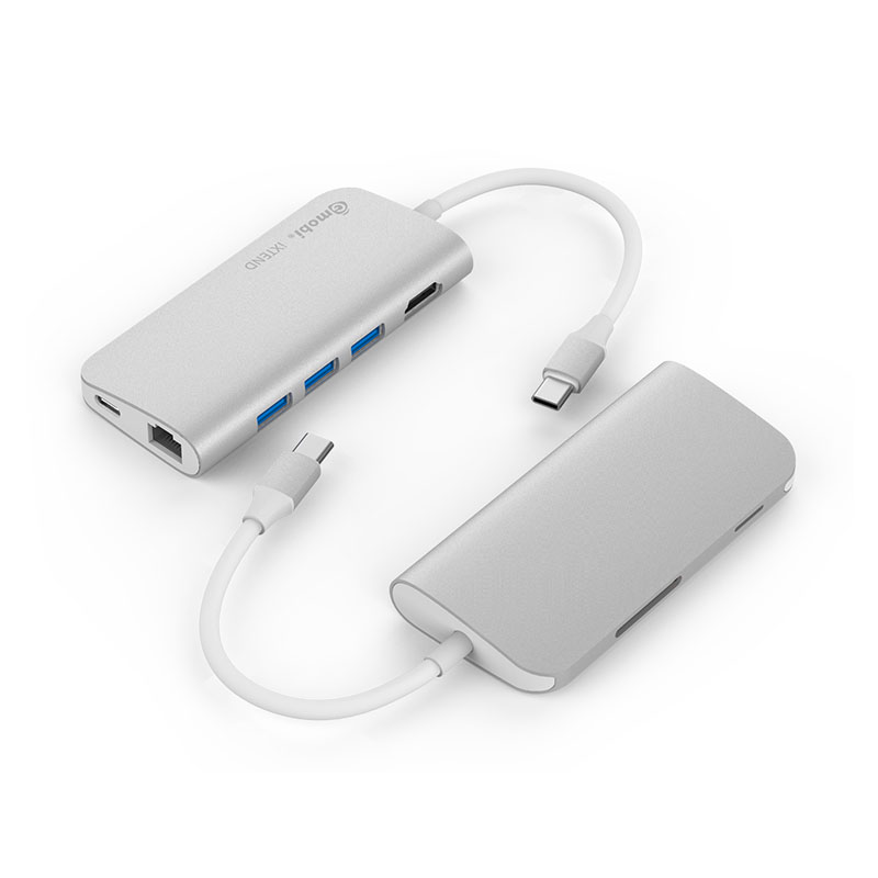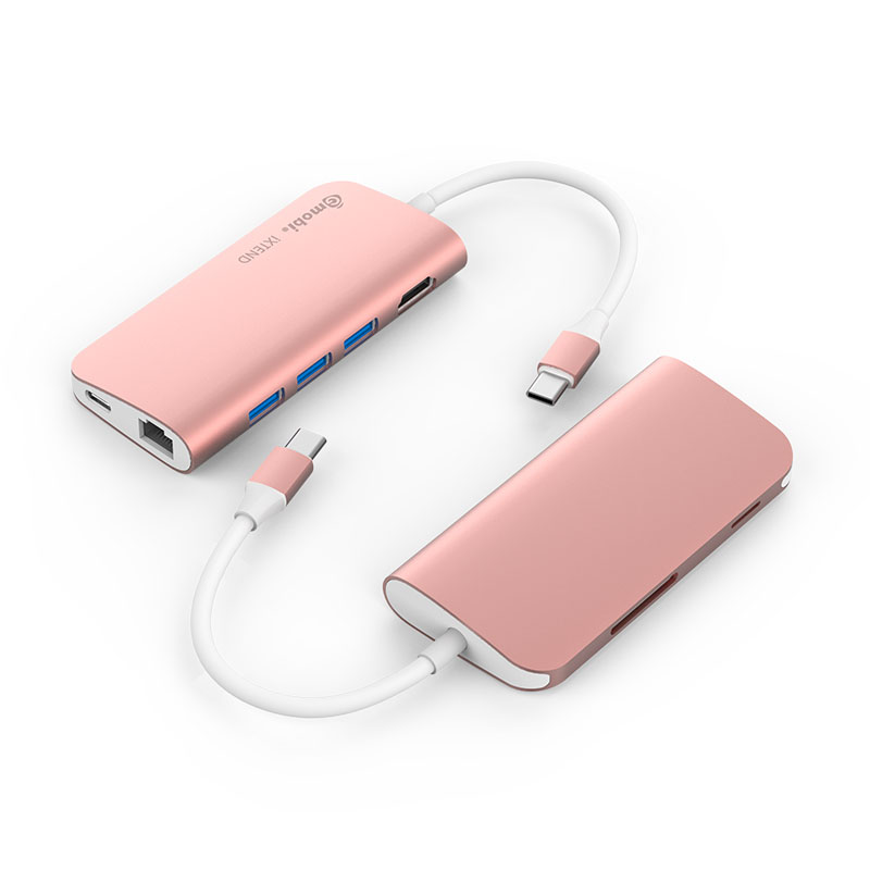 This multiport USB-C adapter GN30E is a multi-port Type-C adapter compatible for Macbook & Chromebook and other USB-C enabled devices, it has 3 USB3.0 extension ports, 1 standard SD, 1 micro SD, 1 HDMI, 1 Type-C female connector for USB PD charging and 1 Gigalan Ethernet.