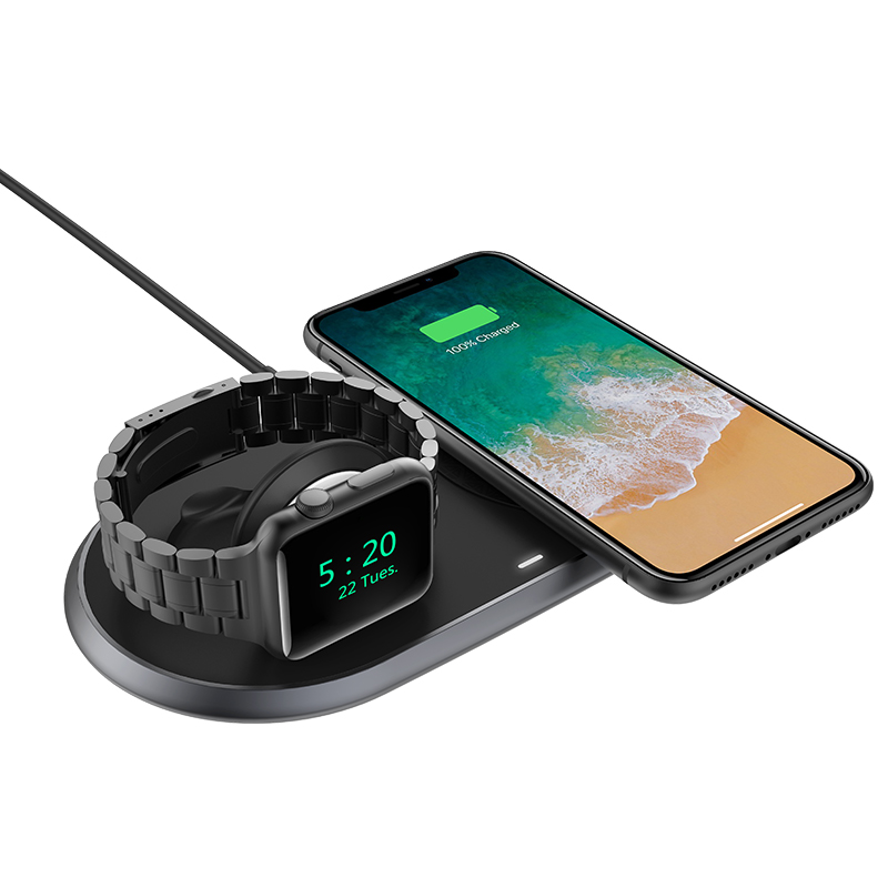 One Charger for All - Gmobi 2-in1 wireless charger is compatible with all wireless-enabled phones and headphones. Just put your phone and TWS earbuds on our wireless charging pad, and the charging holder for Apple Watch.(The original magnetic charging cable for the watch is not included.) Note: Fast charging is supported by the QC 2.0/3.0 wall adapter, not included in the package. The 5W adapter would not work properly.