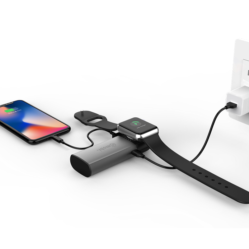 D216B is a portatble power bank which have a USB charging port and apple watch charging mold, it supports charging phones, iPads and Apple Watch.